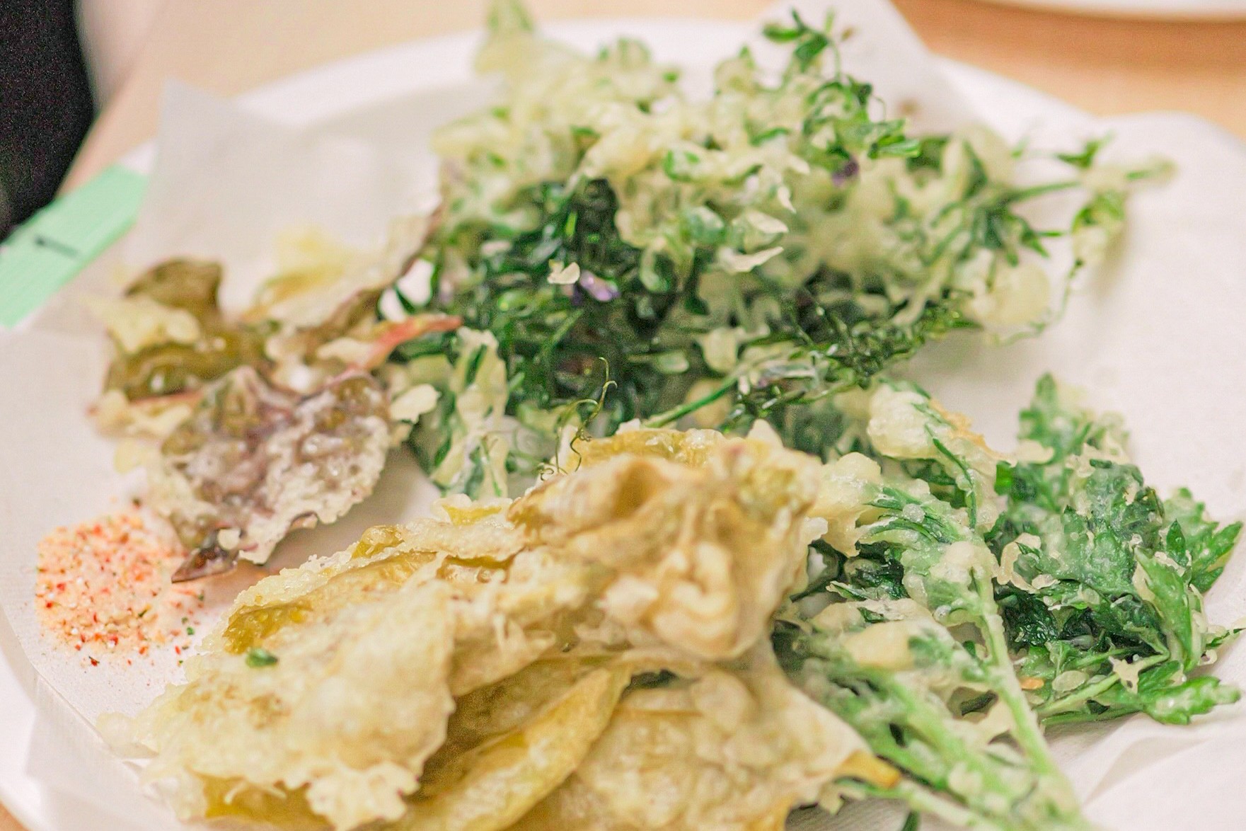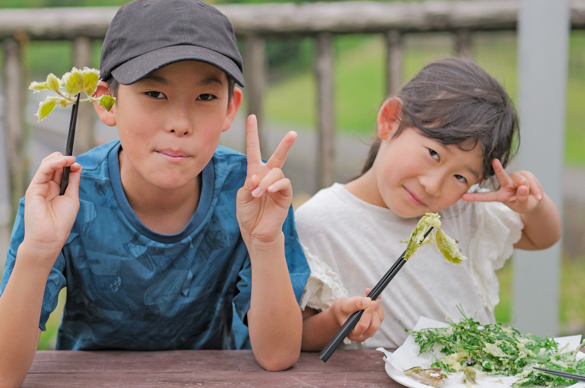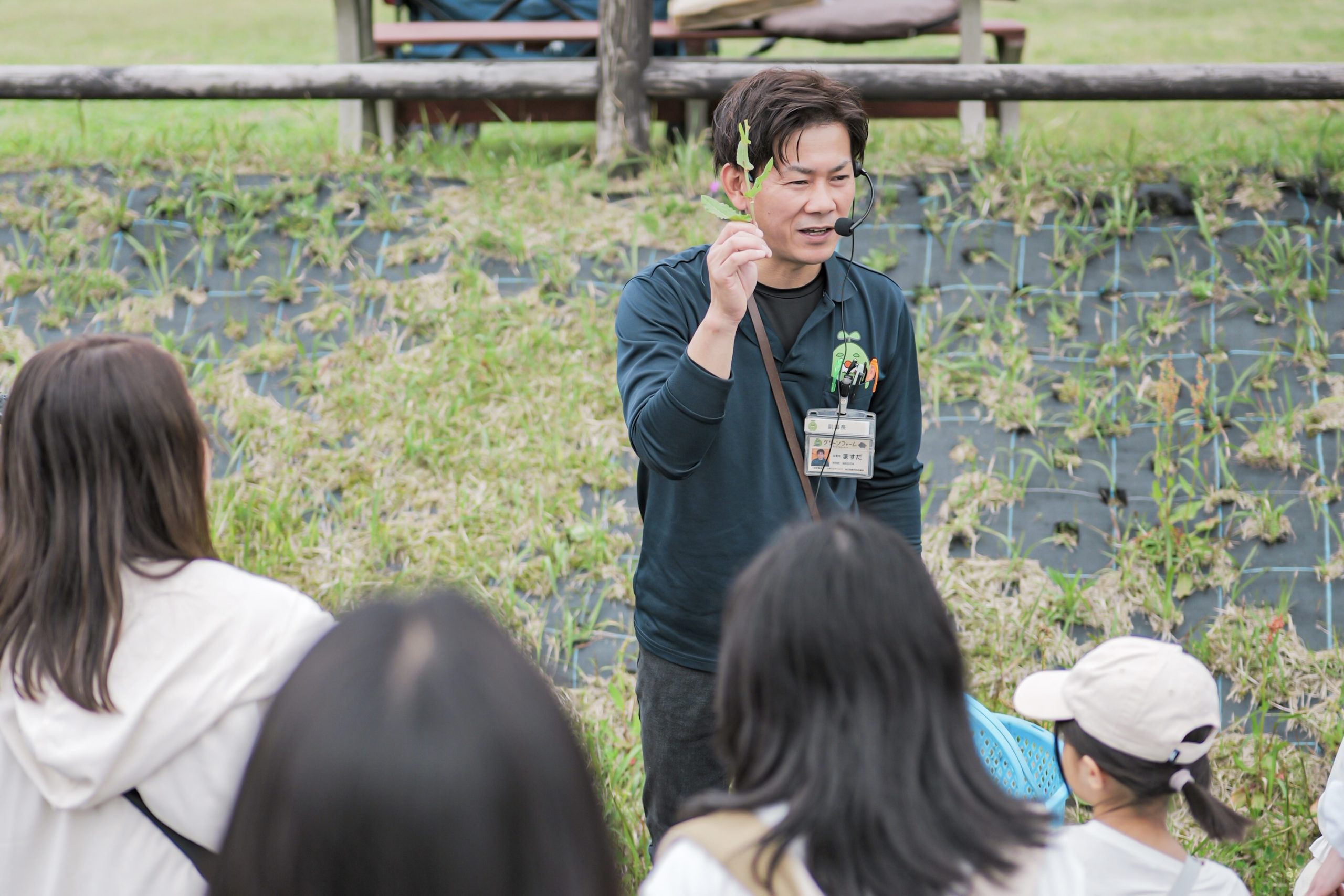 「春の野草を食べよう」では、カラスノエンドウやヨモギ、ドクダミなど園内で採取した野草をすぐに天ぷらに。自然の恵みを五感で楽しめる、グリーンファームならではの体験となりました。